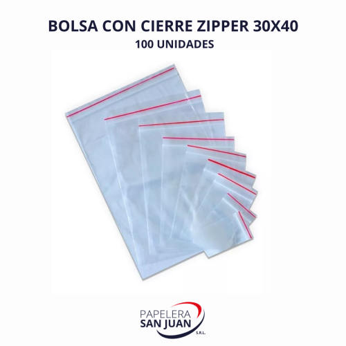 BOLSA CON CIERRE ZIPPER 30X40 X100 UNID